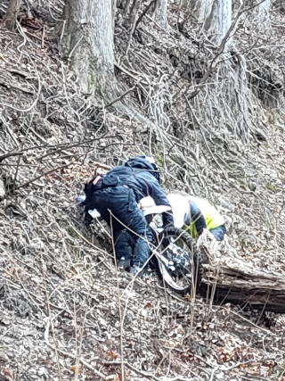 今回は初めての林道が多くて突入しないと分らない道ばかりでした 熊と遭遇経験は有りませんがイノシシ、サル、鹿は普通に居るのでぶつかったりしないか、道路の崩落や凍結スリップ、濡れた苔道路など先頭を走る宮本は判断に戸惑う場所が多かったな・・・ |